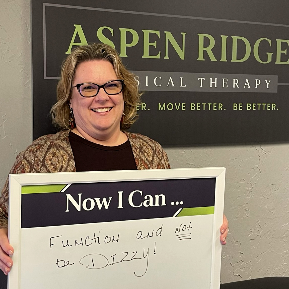 Aspen Ridge is TOP TIER in PT. Matthew Toone and his entire team are knowledgeable, skilled, compassionate, friendly and amazing professionals. They live up to their mission statement and core values!! They truly care about their patients, they are positive, uplifting, encouraging, supportive and will do everything possible to help you Feel Better, Move Better, Be Better. Aspen Ridge has state of the art PT equipment and procedures. I love Aspen Ridge and every person who works there! I give Aspen Ridge, Matthew Toone, and his employees 10+ / 10 in all aspects. I have made incredible improvement and progress since day one, and continue to do so every day after since my total knee replacement surgery. I highly recommend Aspen Ridge for all of your PT needs. You will Feel Better, Move Better and Be Better. They are the BEST of the BEST and ONE in a MILLION!!!